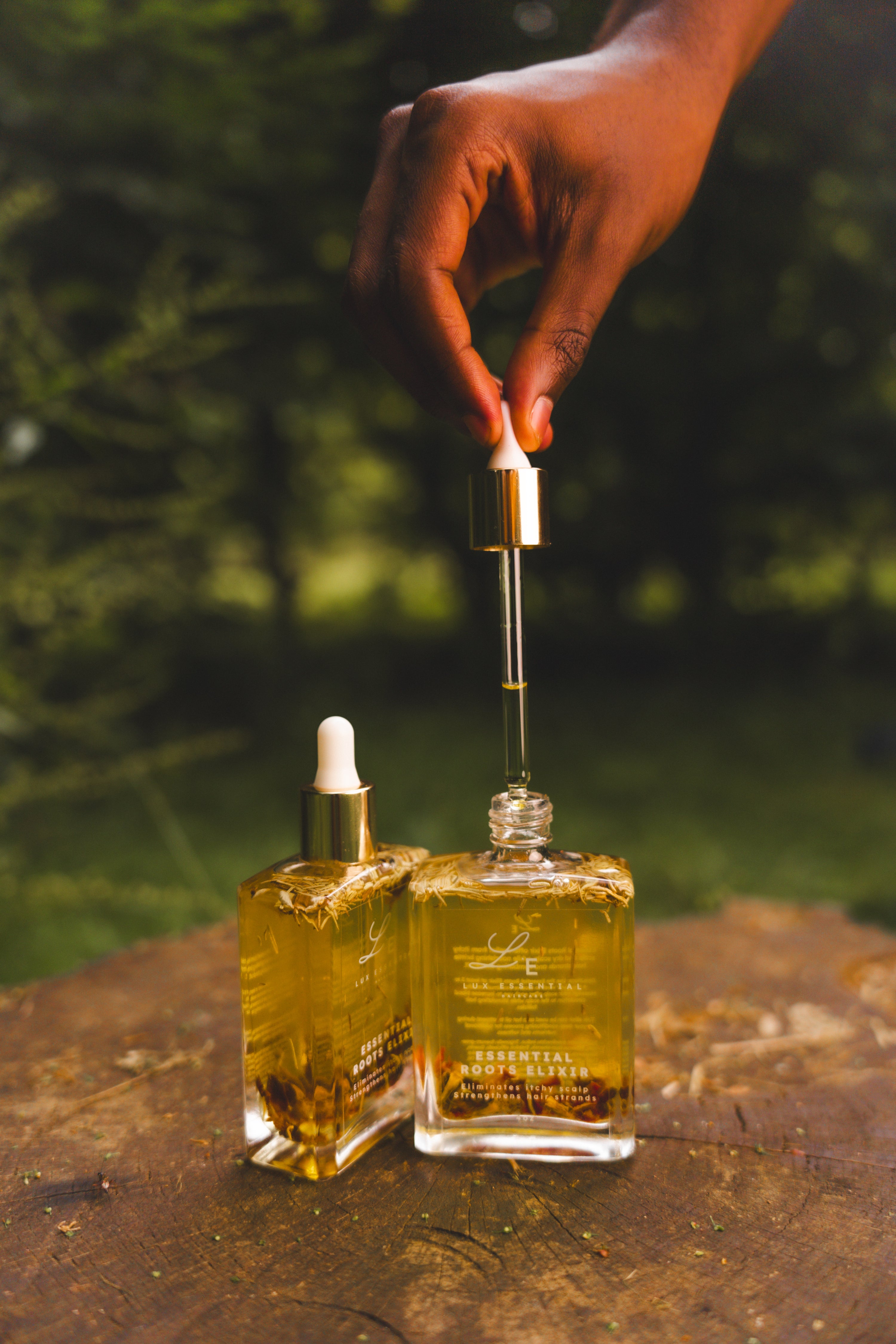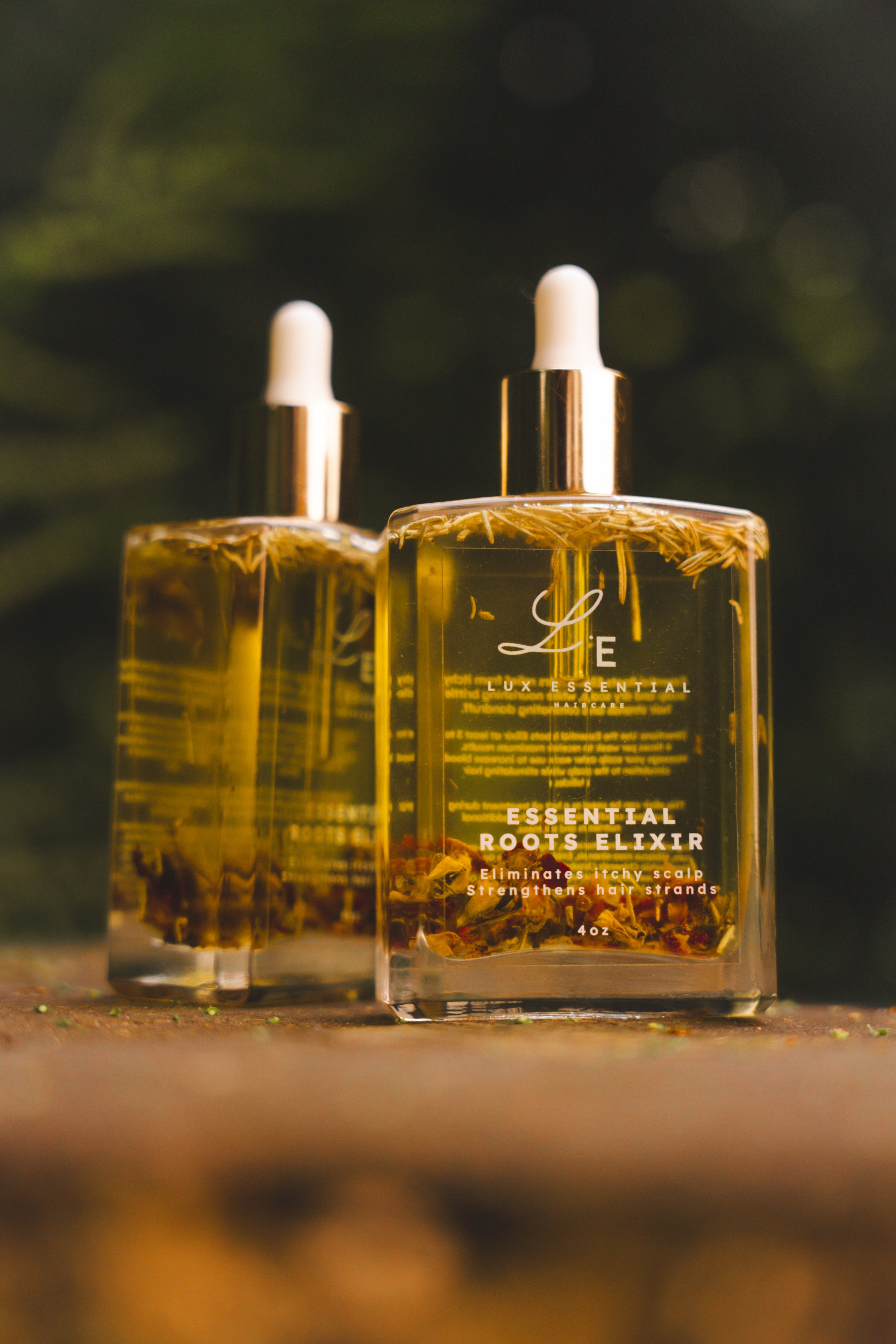 Introducing Essential Roots Elixir, your new go-to for healthy scalp and stronger hair. Formulated with nourishing botanicals and essential oils to sooth irritation and promote scalp health.